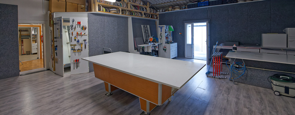 Na společné adrese spolu s naším studiem a kanceláří disponujeme výrobními a skladovacími prostory o ploše 268 + 60 m2, kde na dvou dílnách probíhá vše od příjmu plošného materiálu po řezání, lepení, kování a balení nábytku. Celý proces výroby máme pod kontrolou a jsme v kontaktu s našimi truhláři i vámi. Máte i možnost se do výrobních prostor podívat.
